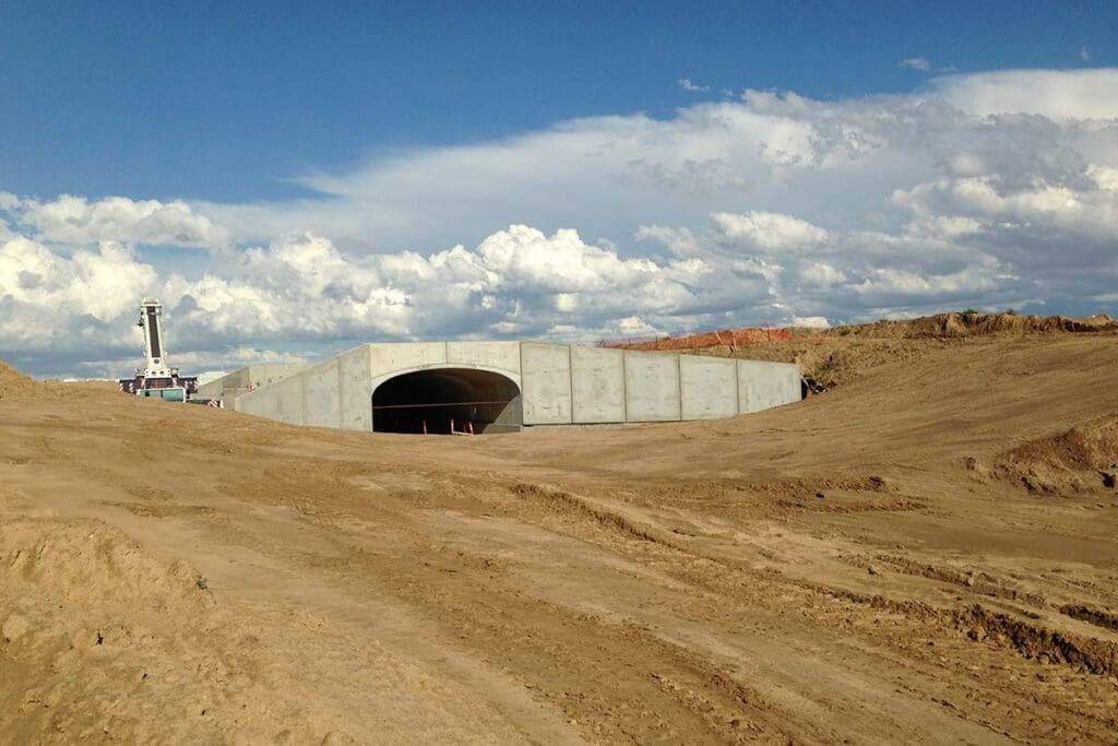 In conjunction with its Stapleton Central Park Boulevard project, IHC Scott constructed the new boulevard, including a Con/Span® bridge system spanning 28 feet with a 10 foot rise, complete, from the concrete footings at the base, to the pedestrian handrail above.