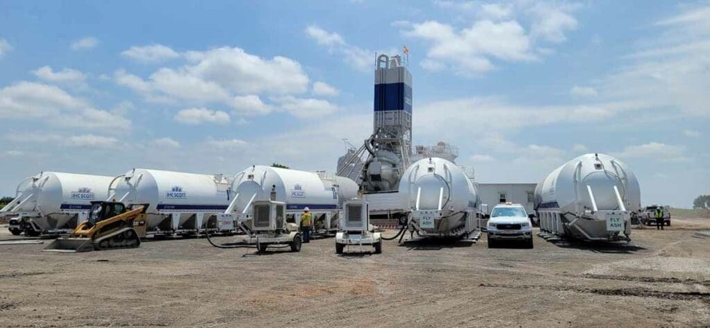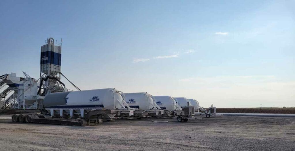 Some challenges we have faced on this job include material delivery times, transporting aggregate to meet specifications from wells 150 miles away one way, night work and unfavorable weather conditions. IHC Scott overcame issues with setting up and approving on-site labs, as well as troubleshooting and certifying batch plant limits